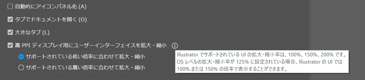 CCのバージョンも高解像度対応で、環境設定での「高ppiディスプレイ用にインターフェースを拡大・縮小」でも