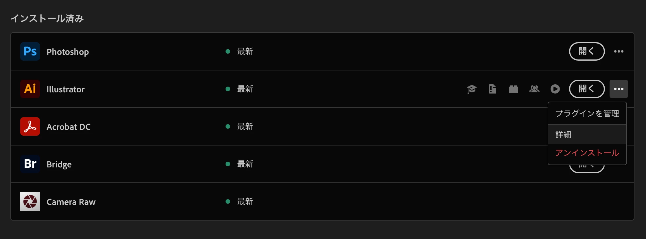 CreativeClowd.appを起動したら「他のバージョン」が表示され、