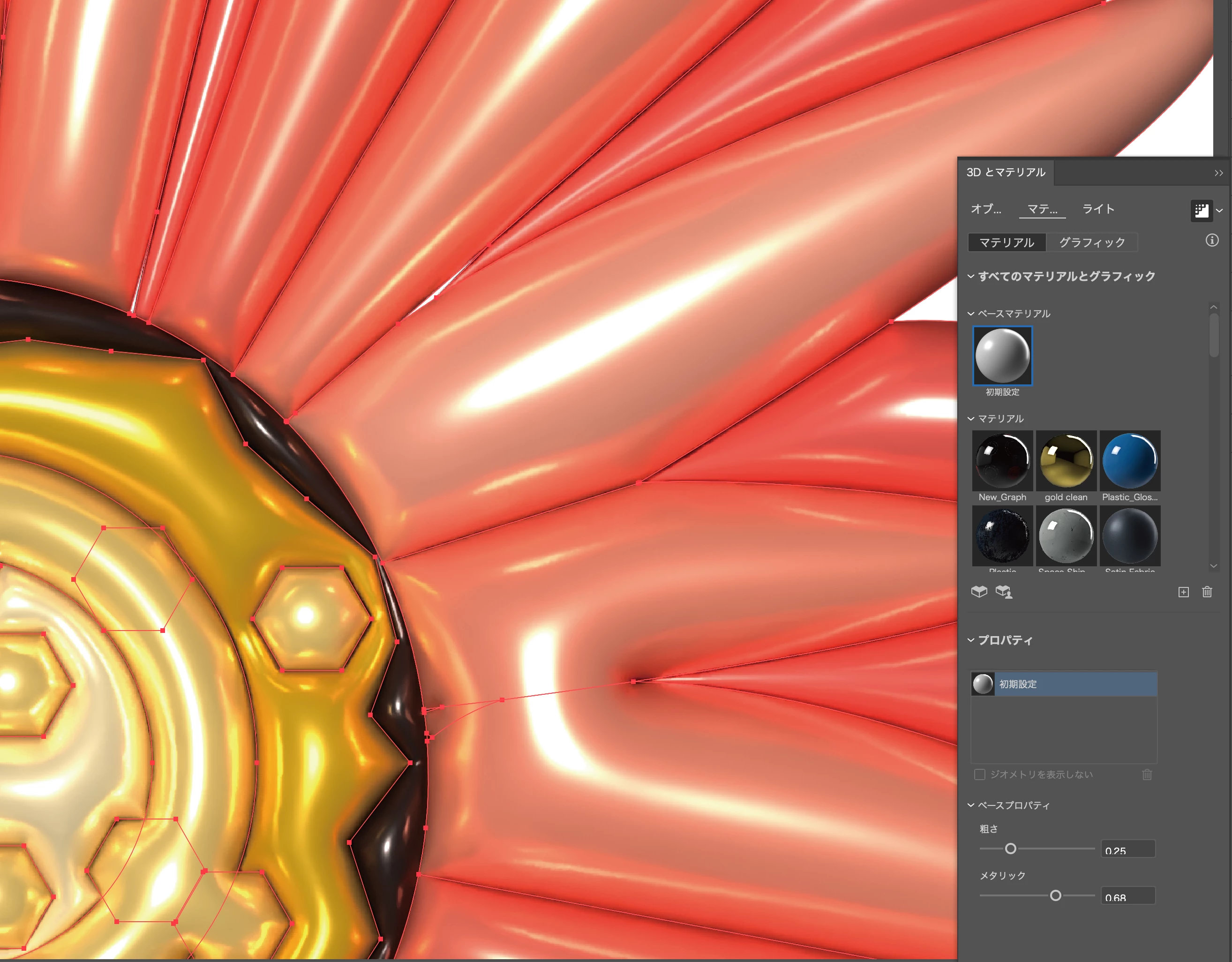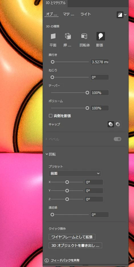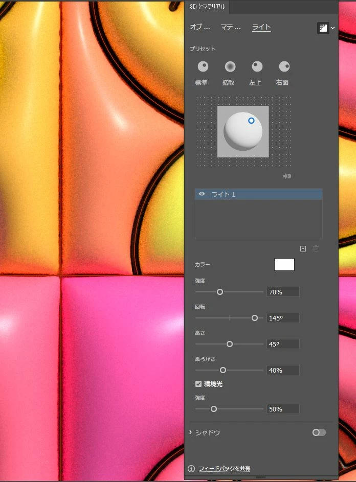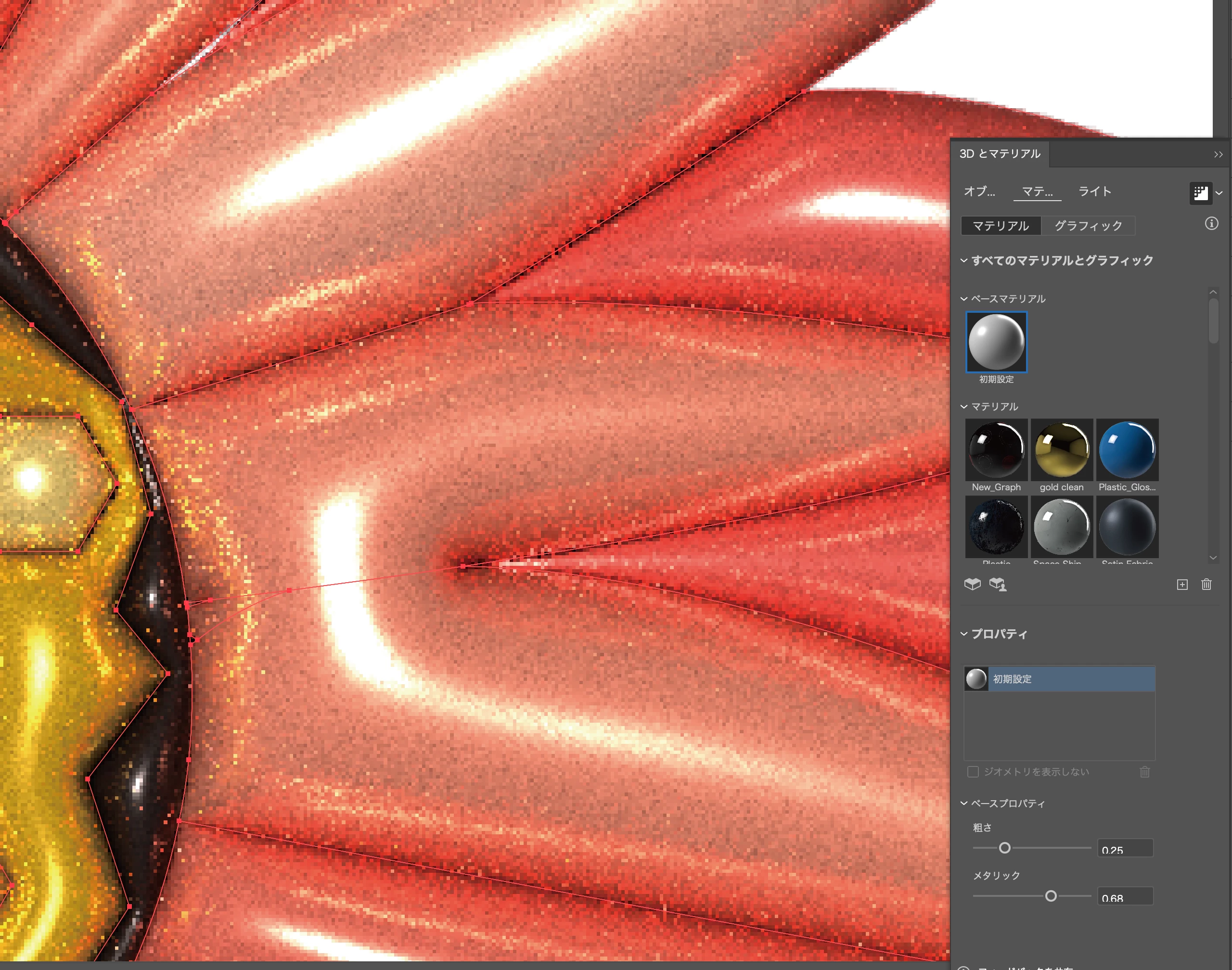 Cchiaki_0968ParticipantForum|Forum|8 months agoMay 20, 2025質問「3Dとマテリアル」の拡張にてレイトレーシングの画質が悪い(荒い)Forum|Forum|8 months agoMay 20, 2025返信数 2.1133 ビュー製品:Illustrator v29.5.1OS:Windows 10 Illustratorで【3Dとマテリアル】の拡張を使用し、レイトレーシングをしたところ画質が悪く・荒く表示されます。(キャプチャ1) レイトレーシングがオフの状況では通常通りの画質かと思います。(キャプチャ2) 【3Dとマテリアル】の設定は以下の通りです。(キャプチャ3・4・5) 先日使用した際は綺麗にレンダリングできていたので、設定をいじってしまったのかも?と、設定の初期をを試しましたが回復せず、、、(キャプチャ6) 解決方法をご存じの方はお知恵をお貸しいただけると嬉しいです。Win