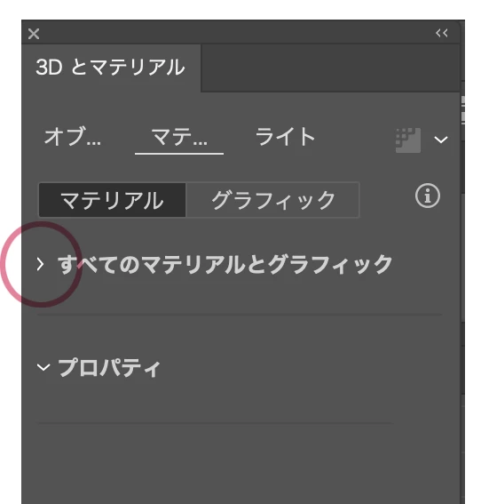 3Dとマテリアル プロパティが表示されない