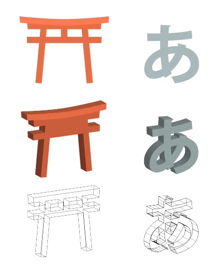 左の鳥居の図形をオフアクシス法で立体にしたいのですが、中断のように穴の部分が埋まってしまいます。