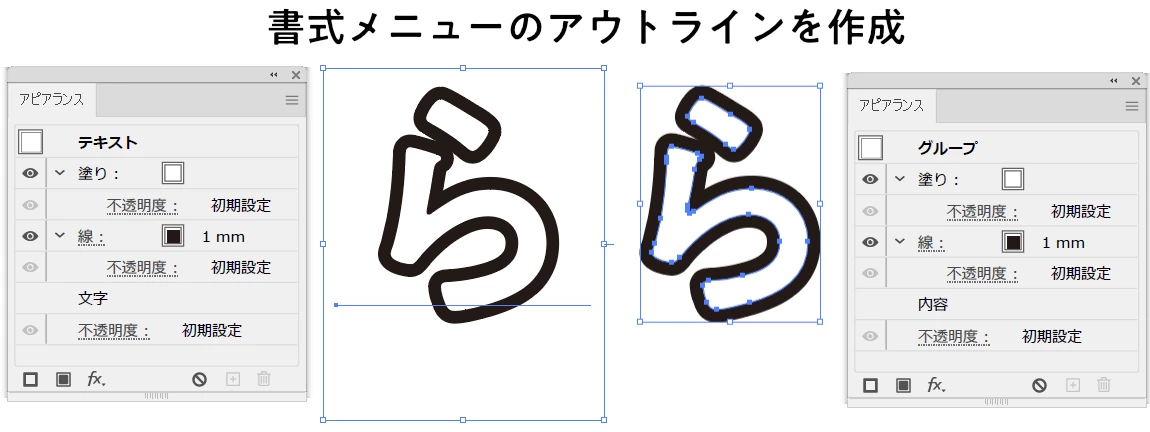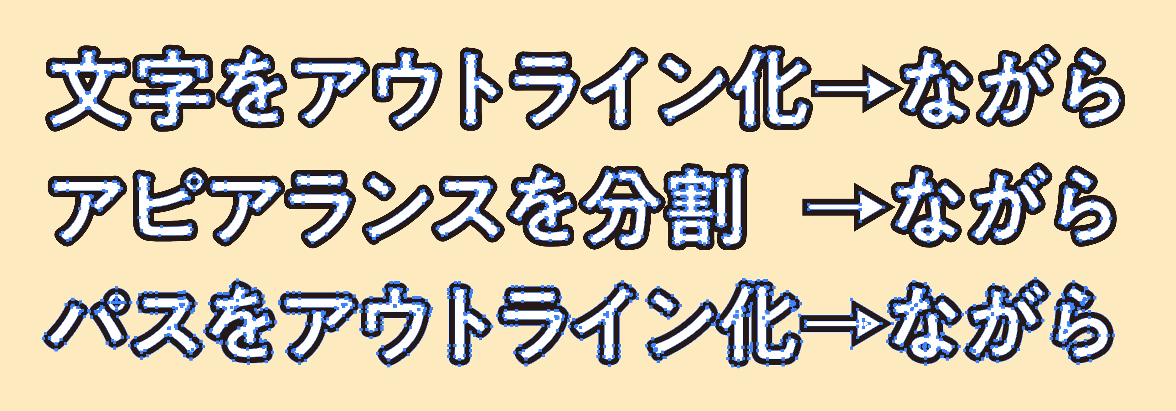 「文字をアウトライン化→アピアランスを分割→パスをアウトライン化」