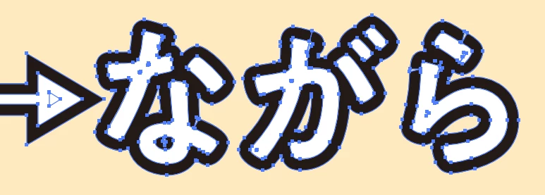 また、袋文字にする際に、パスのオフセットで太らせた方がアウトライン化後のパスの処理が楽(中抜き部分のパスを消せるなど)なため、線ではなくオフセットで太らせるようにしていました。
