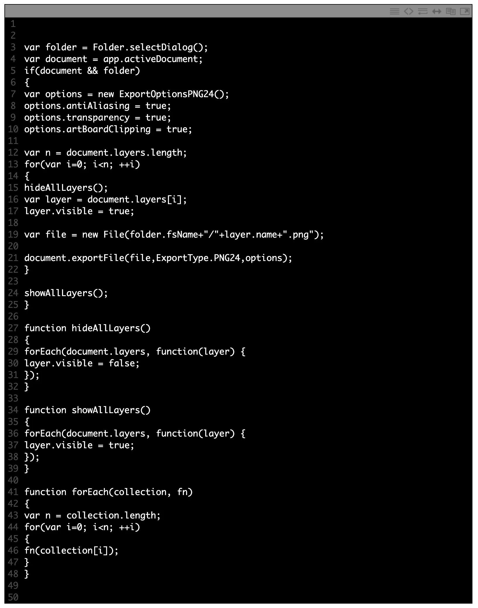 forEach(document.layers, function(layer) {