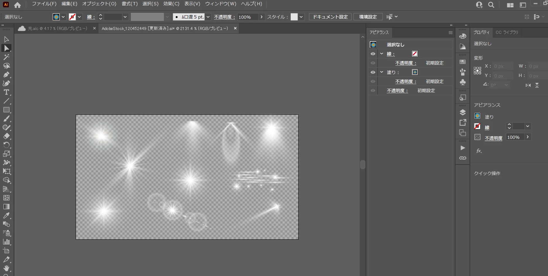 adobestockで光の画像をインストールしました。背景無しでのpng保存(光のみ)はどうやってできますか。ダイレクト選択ツ-ルや選択ツールで選択できるものとできないものがあります。選択して書き出しても若干黒色が入っていいたりするのでよく仕組みがわかりません。