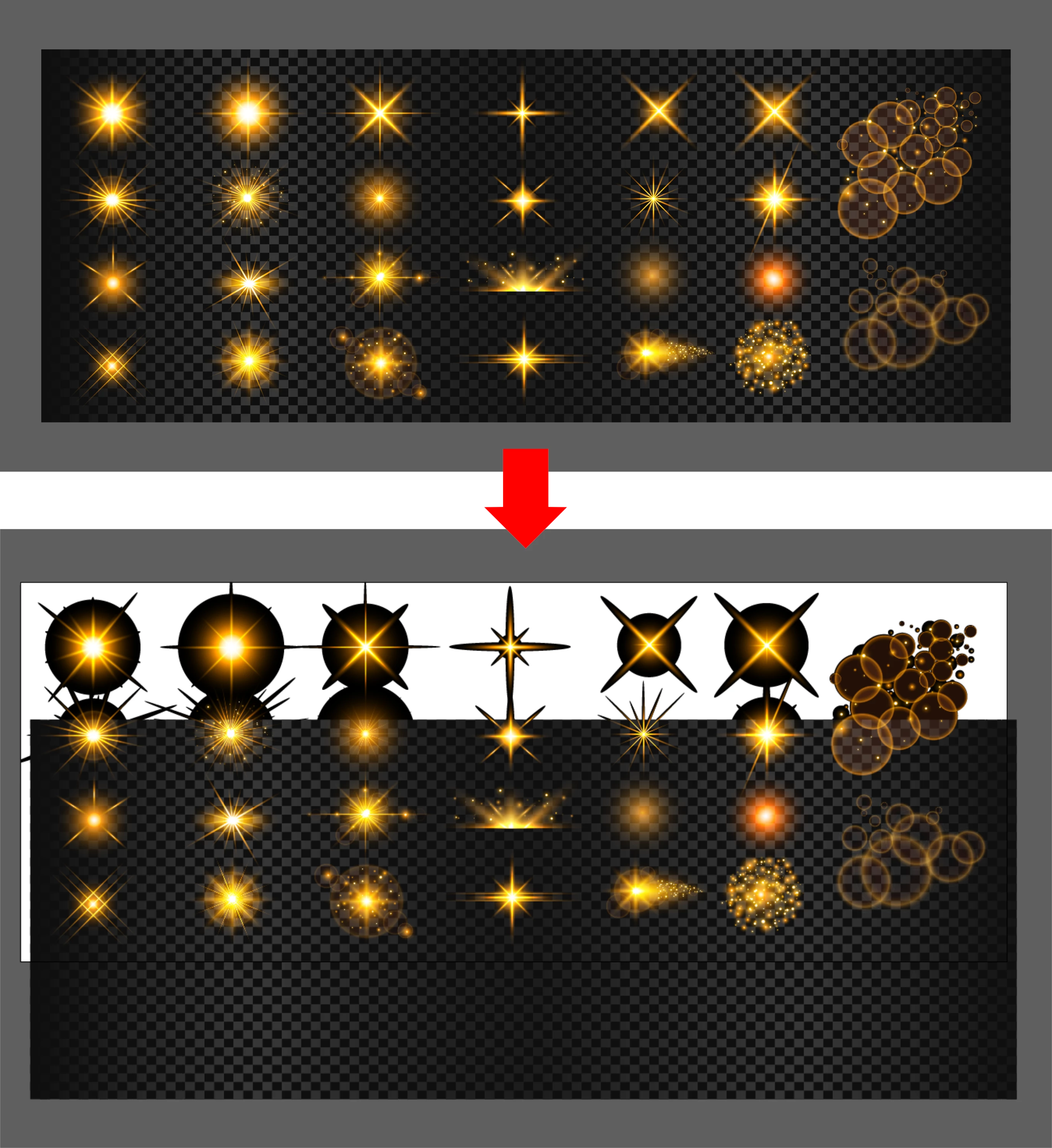 こちらから好きな光のオブジェクトを選んで背景透過(PNG)で書き出そうと思い、背景を削除したところ、光のオブジェクトに黒い枠がでてきてしまいました。