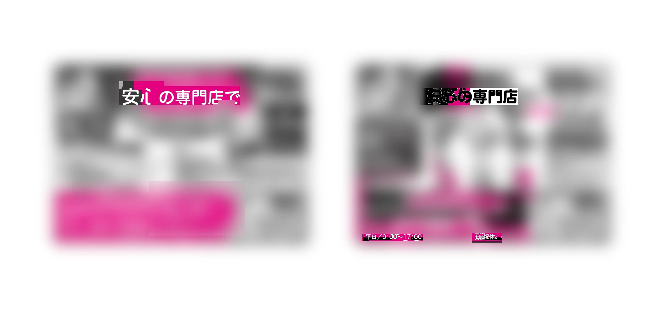 (「安心の専門店」部分は左が白文字、右が黒文字でウェイトも異なりますし、右の画像の下部にある時間や休日表示が左にはないので、わかりにくい状態ともいえます)