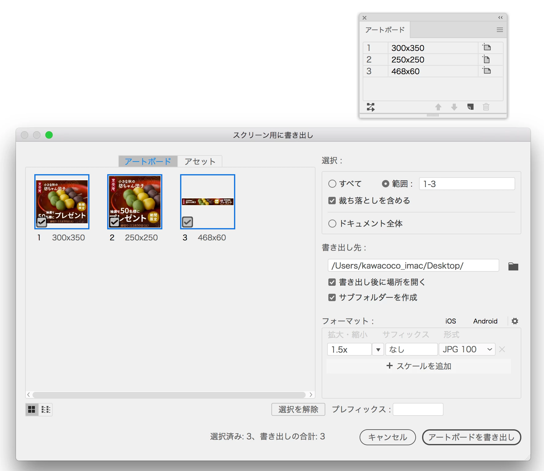 これにより、アートボードごとに書き出しをすると、番号が重複したアートボードが上書きされてしまい、正常に書き出せません。