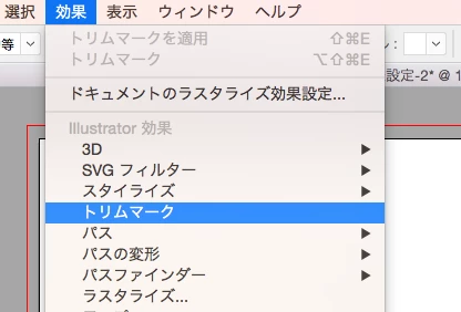 3.メニュー「効果」>「トリムマーク」
