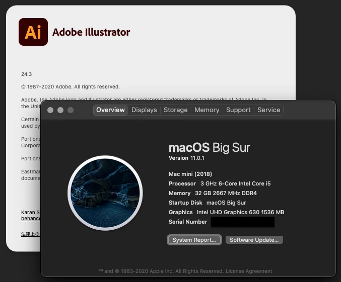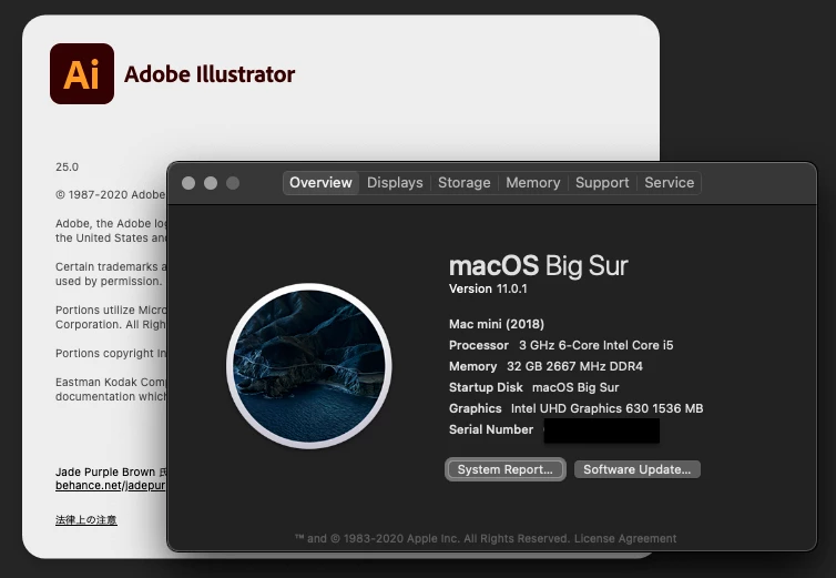 MAC OS 11.0.1にアップデートしたら、ADOBE AI などが使えなくなってしまった。