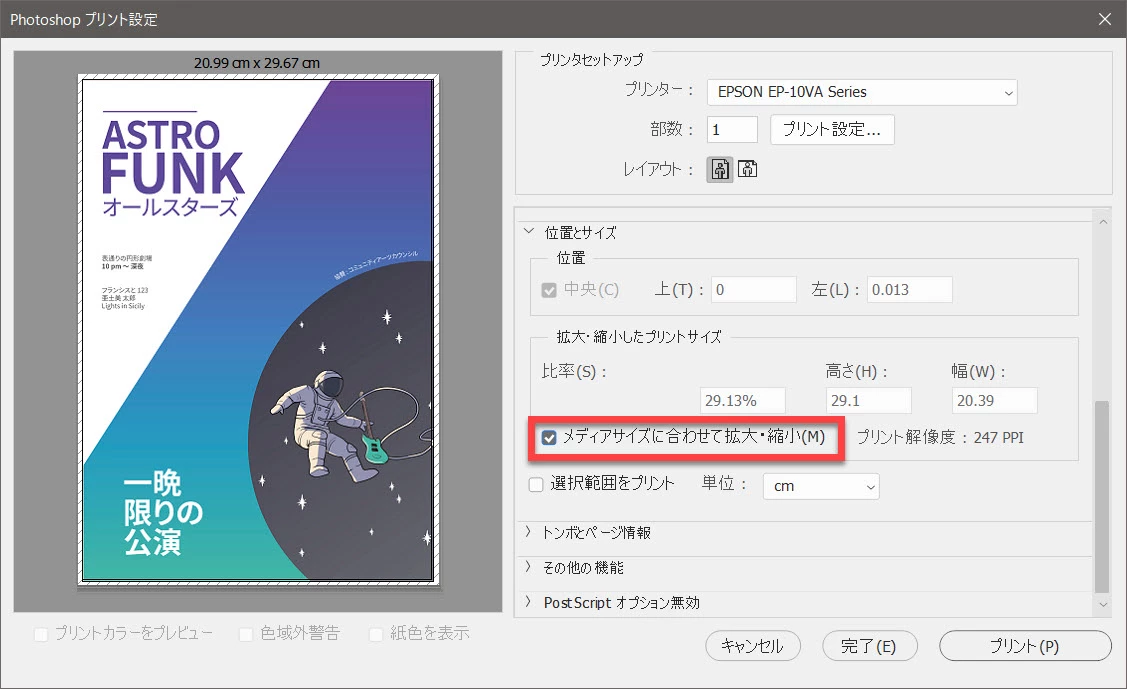 CCで作成したものをJPGに書き出すと大きく印刷される