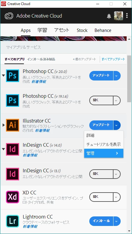 以前のバージョンの Creative Cloud アプリケーションをインストールする