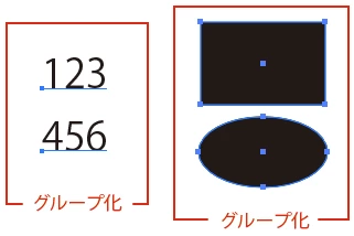 ・複数のテキスト (テキストボックスではないほう)がグループになっているもの