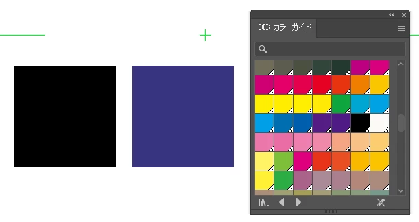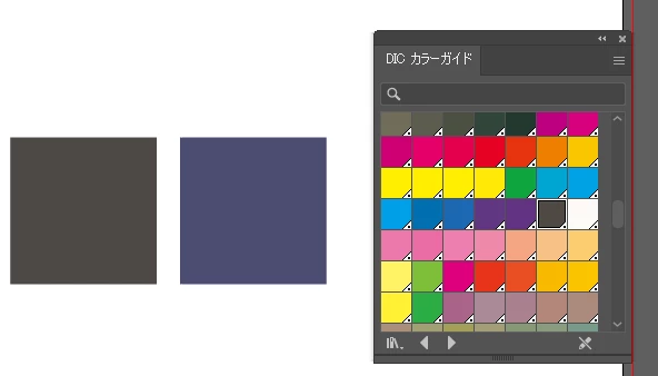 新規ファイルを作成したうえでDICのカラーパレットを表示すると、全体的にくすんだ色になり実際に使ってもやはりくすんだ色に表示されます。