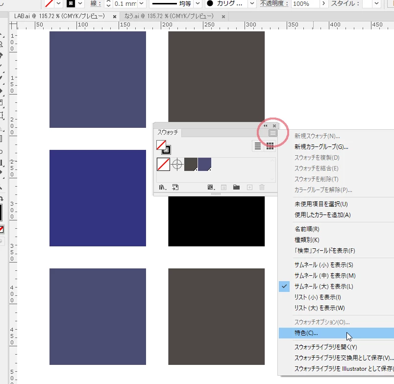 特色オプションの違いかな? それと特色オプションがプロセスカラーの値を使用している場合は,プレビューモードがオーバープリントプレビューかどうかも関係すると思います。