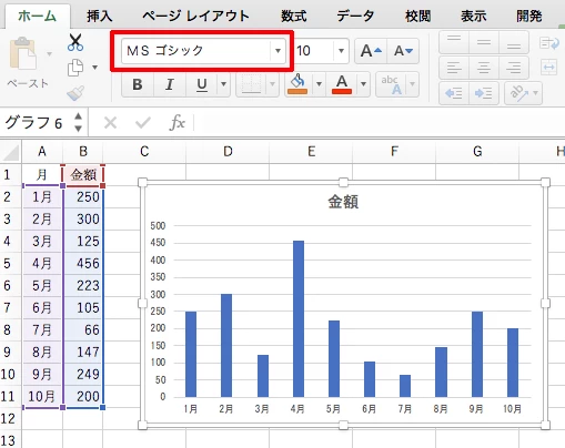 MSゴシックに変更してみた(ここでグラフ内の文字が変更される)
