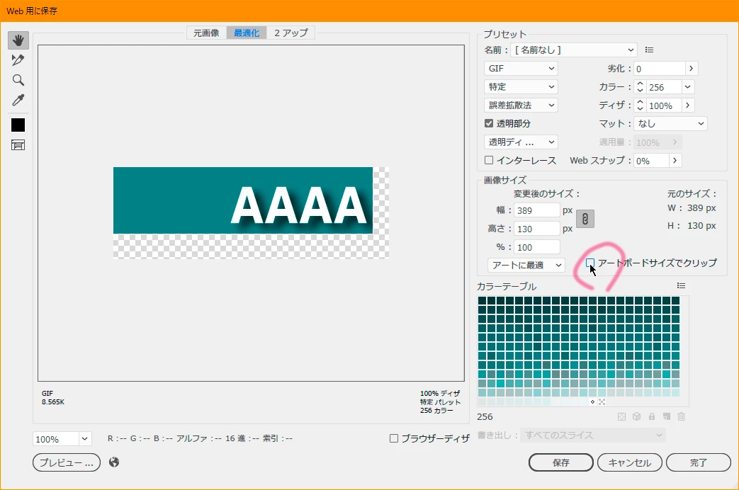 アートボードサイズでクリップにチェック、でしょうか。