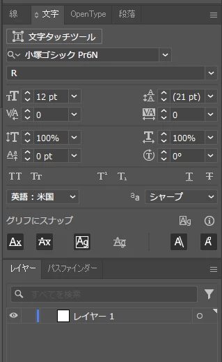 illuatrator2025 文字タブ アキなし設定