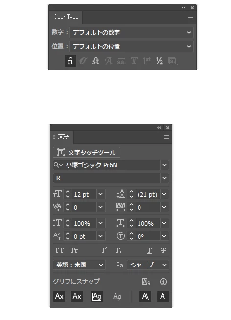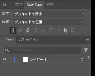 文字パネル、OpenTypeとも単体にしてみましたがやはり表示されません。困りました。