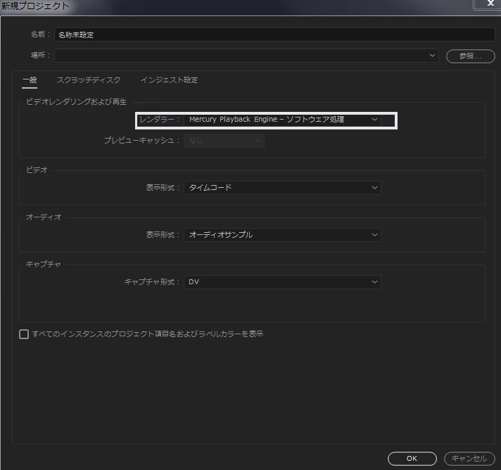 新規作成が出来る場合は、新規作成プロジェクト作成画面でレンダラーをGPU高速処理からソフトウェア処理へ切り替えてみるといった方法もあるようですね。