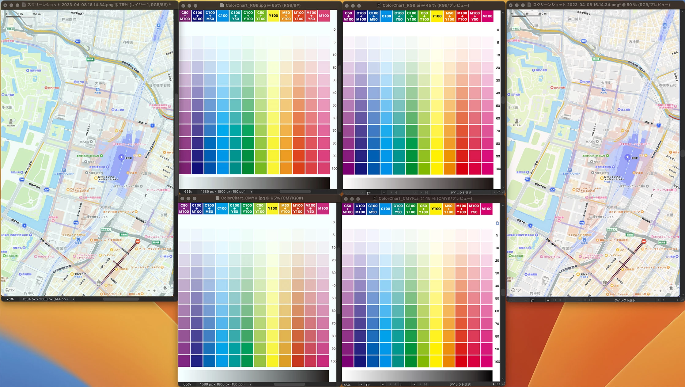 IllustoratorとPhotoShopで色が揃いません。