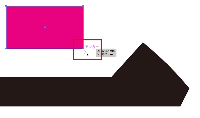 2.ポイントにスナップさせるためには、長方形のアンカー(角)を選択します。