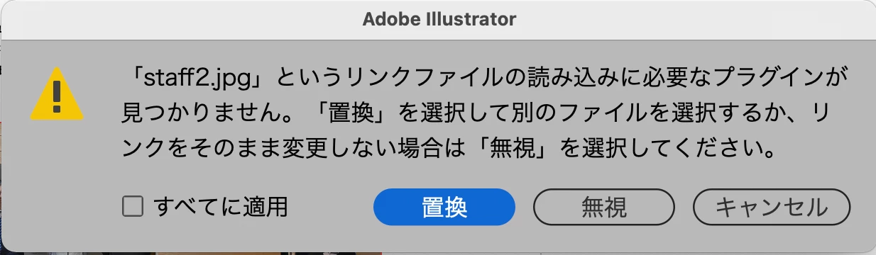 画像にphotoshopで変更を加えた後illustratorに戻ると、「リンクファイルの読み込みに必要なプラグインが見つかりません」と出て、その都度「置換」から配置し直さないといけないので面倒です。