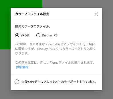 ①Figmaの設定はsRGBになっておりました。