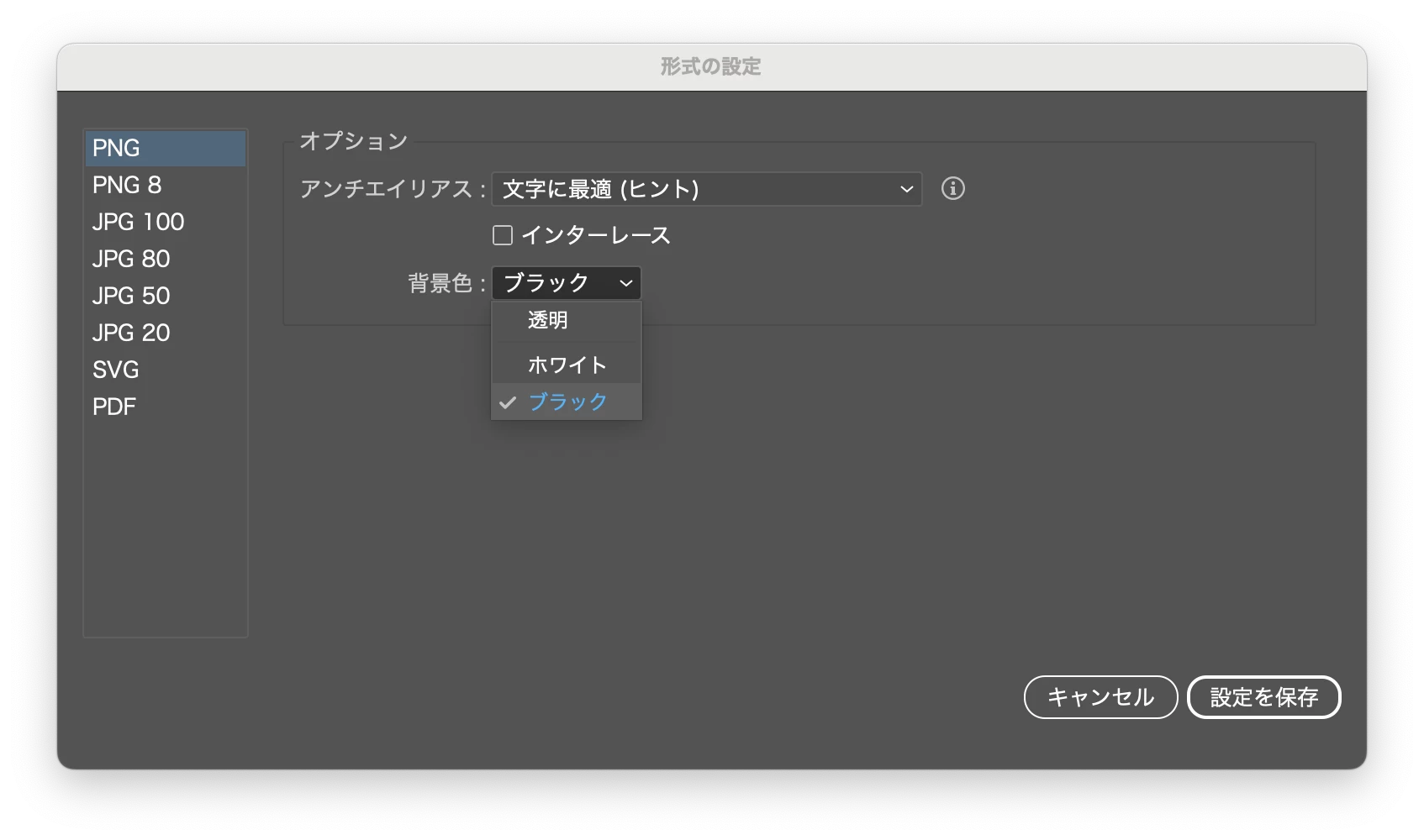 Illustratorで書き出しを行い画像にしようとしたのですが、書き出した物の背景が黒くなってしまいます。どのようにしたら改善できますでしょうか?