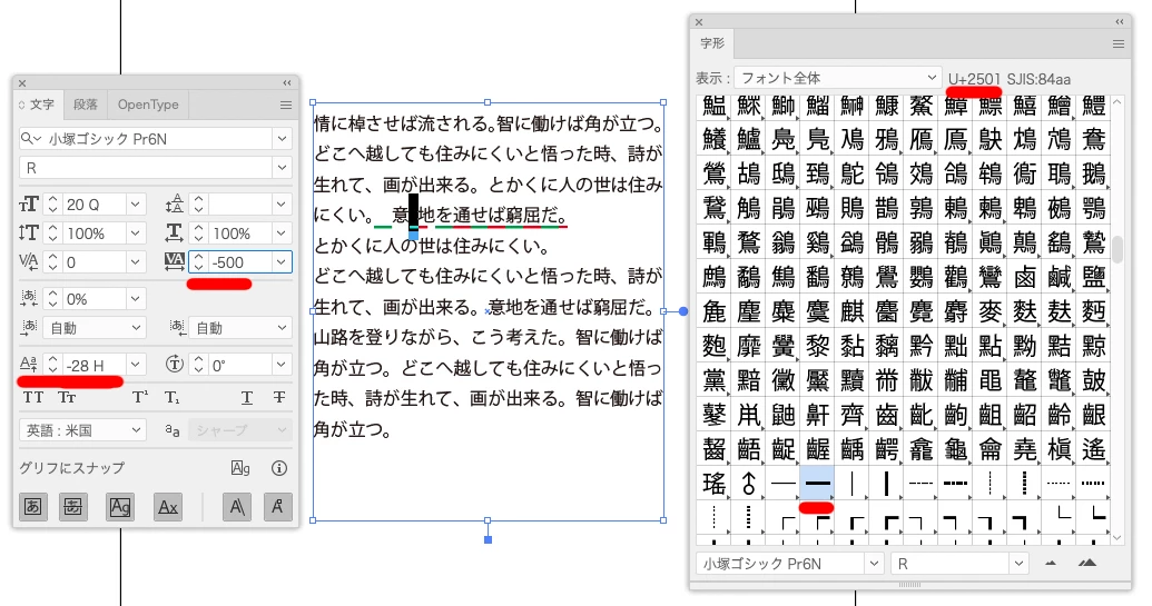Illustratorではなんにもできないですねぇ。「この下線の問題だけ大昔からずっと解決されないのはなぜなのでしょう?」って,この下線機能を知っている人全員が考えたことがあると思います。