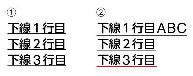 少しでも効率よく②のような下線を付ける方法をご存知の方がいらっしゃいましたら、