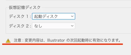 『Illustrator』で、【仮想ディスク】を指定するのですが、一向に変更が効きません。