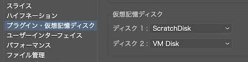 仮想ディスクは、Macintosh HDをパーティション分けして、仮想ディスク専用のScratchDiskを割り当て用として作成しています。(MacMiniを購入し、Illustratorインストール後にパーティション作成しました。)