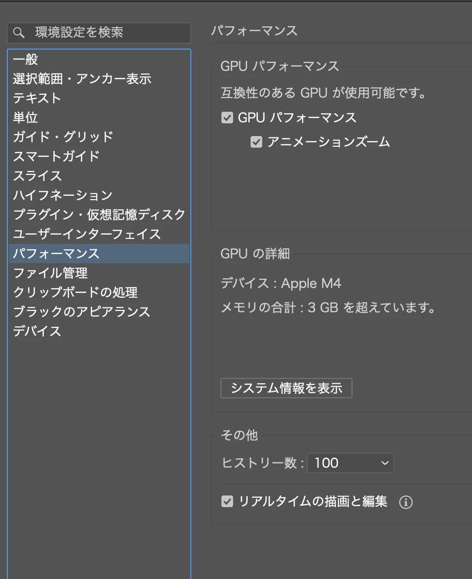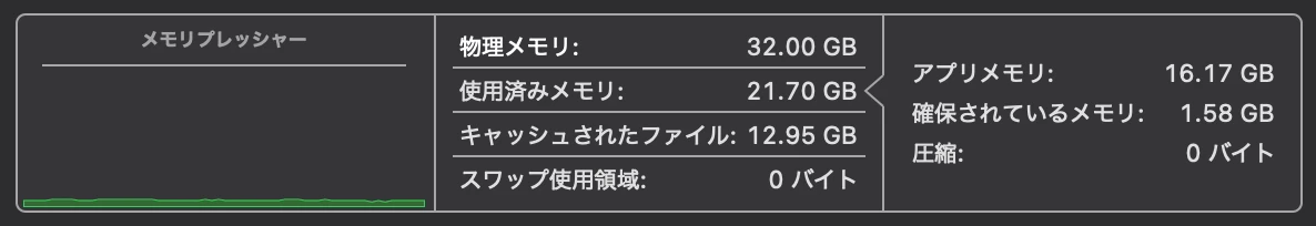 >AppleSiliconマシンの場合、グラフィックメモリがメインメモリより割譲されます。なのでGPUを別途搭載したWindowsマシンと比較して不利なハードウェア構成と言えます。