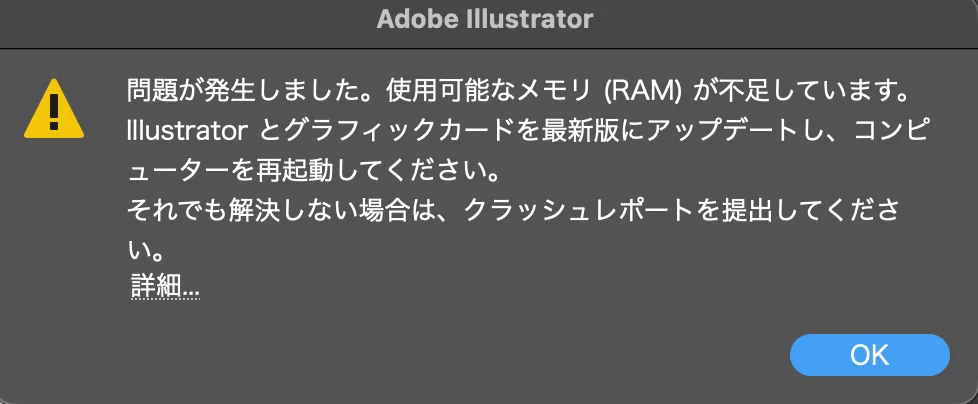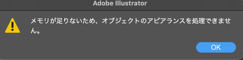 Illustratorで3Dとマテリアルを使用する際、メモリ不足と表示される