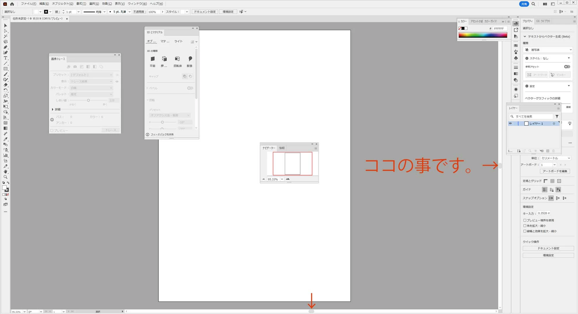 Illustratorの、向かって右手側にある、上下させるスライドバー、および