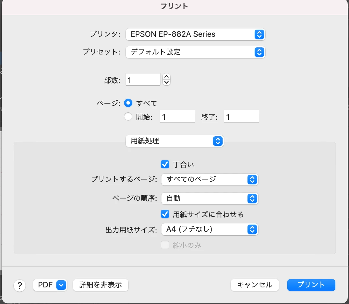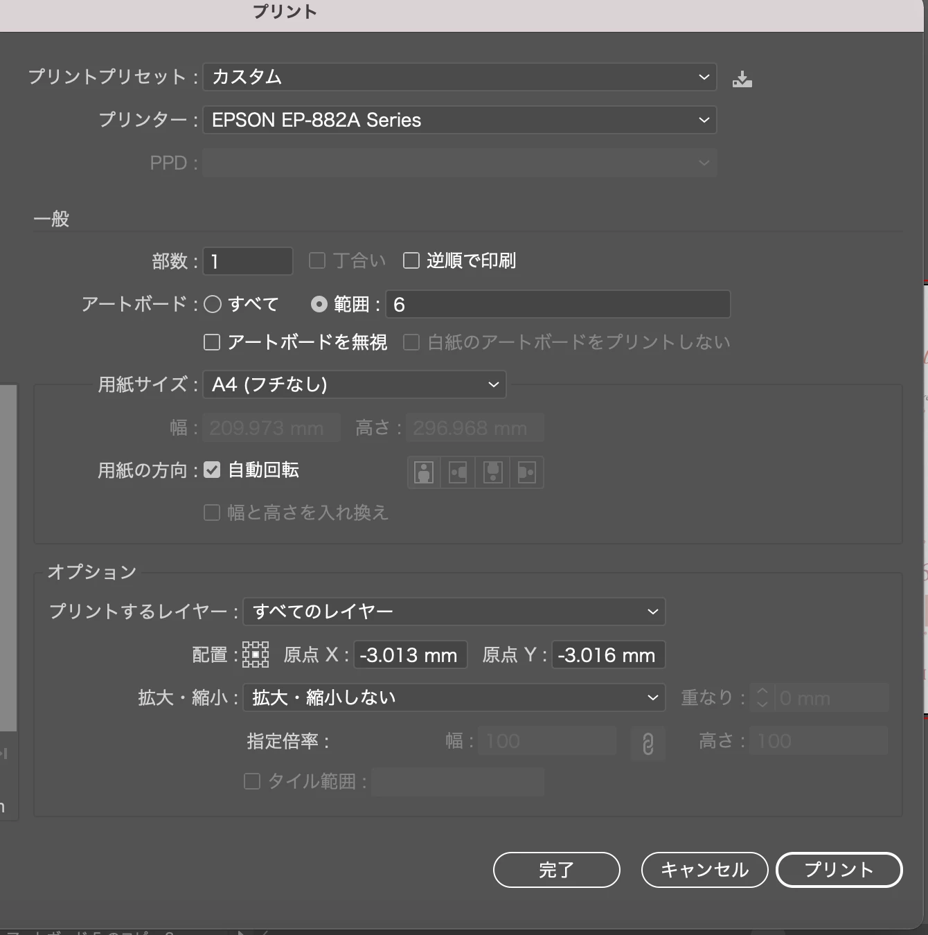 三三田5CD6ParticipantForum|Forum|4 years agoMay 20, 2021解決済みIllustratorのプリント結果、A 4サイズがハガキサイズに縮小されてしまうForum|Forum|4 years agoMay 20, 2021返信数 1.428 ビューMac bigsur バージョン11.2.3を使用しています。IllustratorでA4サイズをプリントしているのですが、EPSONプリンターを修理して戻ってきたら突然A4がハガキサイズでプリントされるようになってしまいました。WEBページは問題なくA4サイズでプリントできたため、プリンター会社からは「おそらくillustrator上の設定の問題」と回答されました。用紙サイズはA4、拡大・縮小しないを設定しています。どの部分を変更したら元に戻るのでしょうか。教えていただけると嬉しいです。印刷と公開