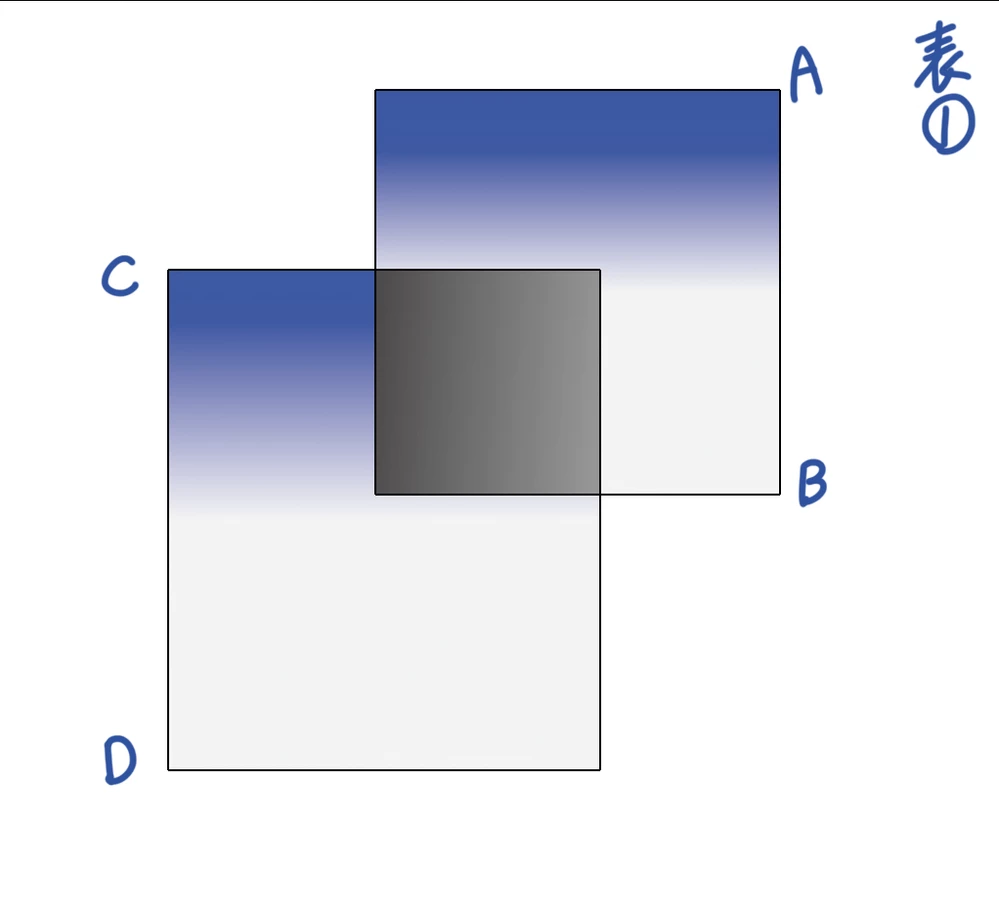 ですので表1のようにオブジェクトごとに個々のグラデーションが引かれている状態になってしまいます。
