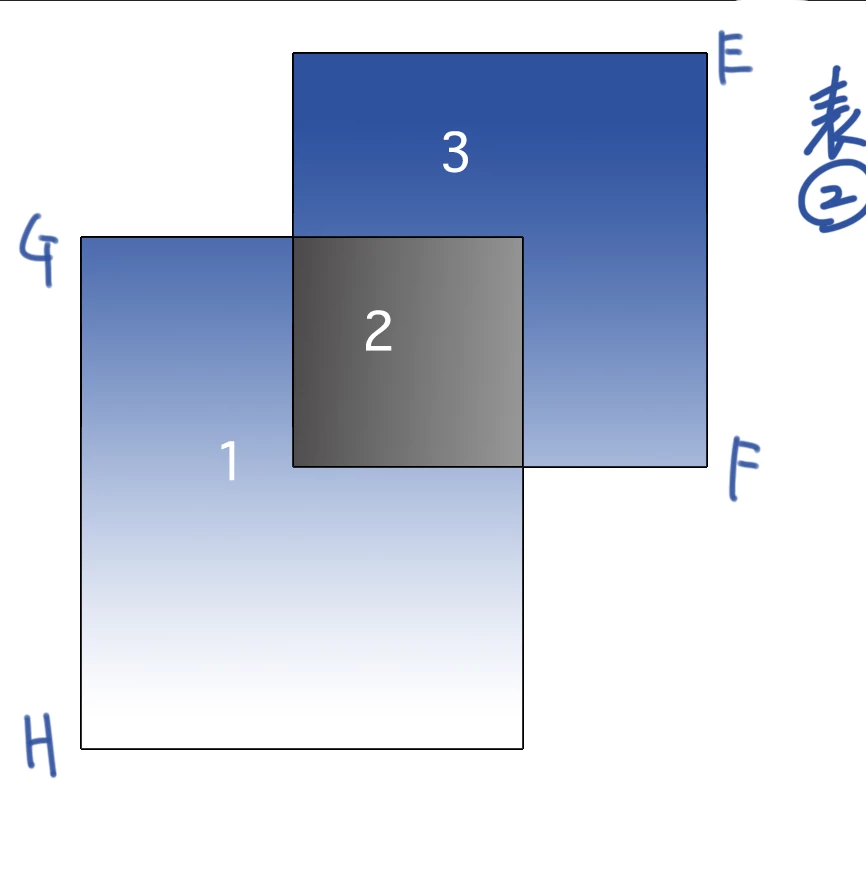 ライブペイントツールを使用して表2のようにEからHにかけて繋がっているグラデーションを塗りたいです。