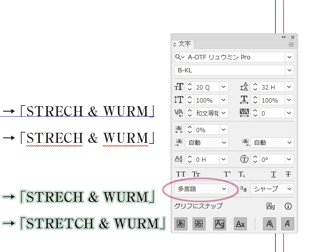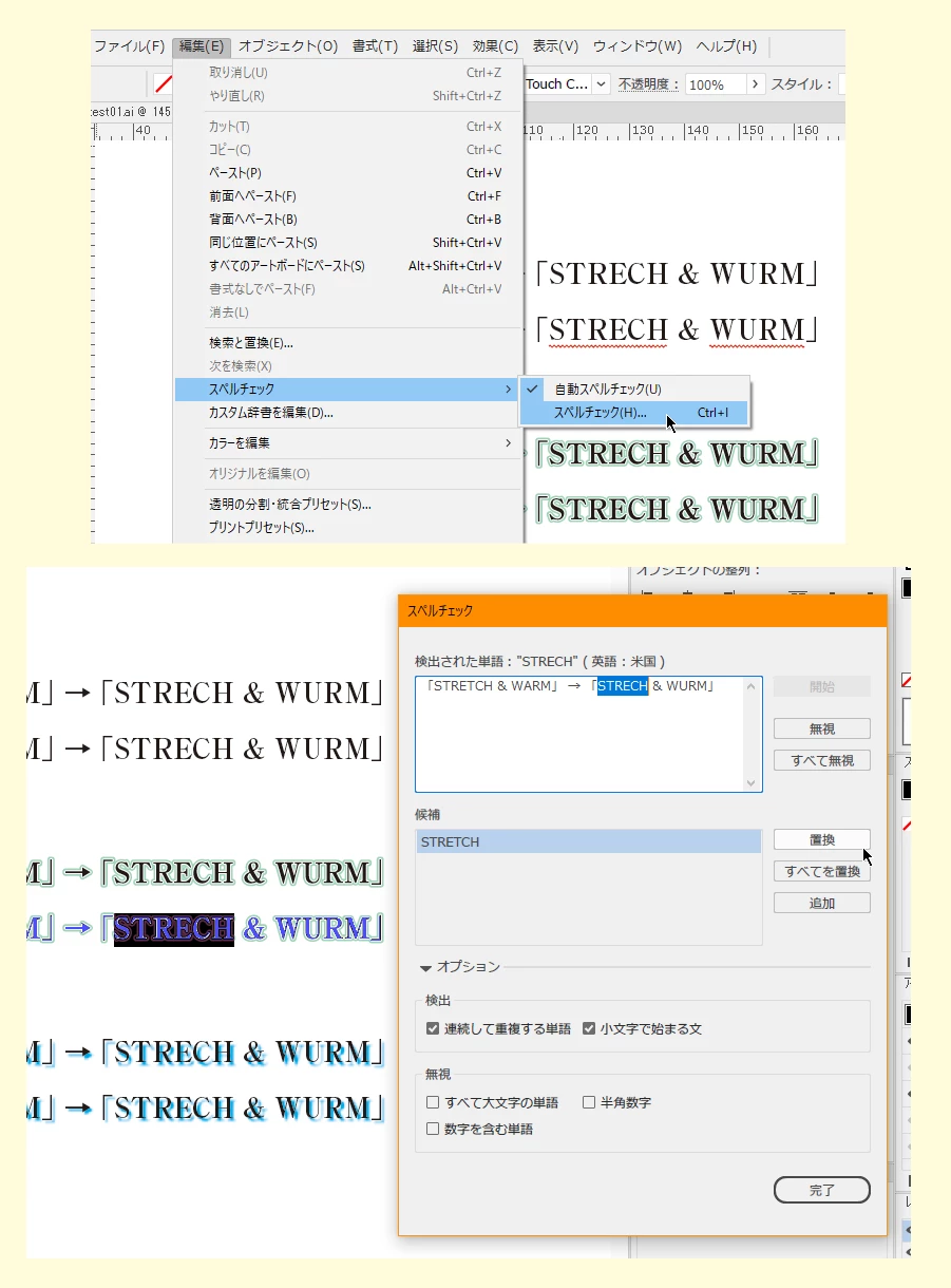 Illustrator2020(Mac High Sierra 10.13.6)で自動スペルチェックを使用しているのですが、