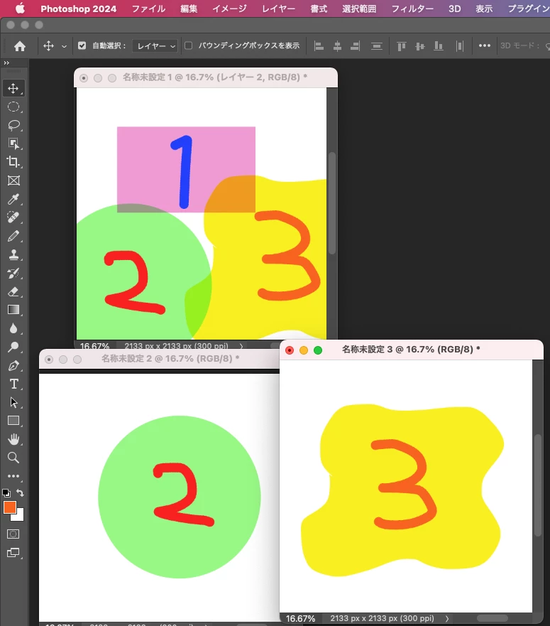 3枚の素材で作業をしている場合→1枚目製作物、2・3枚目を素材画像のみとします。