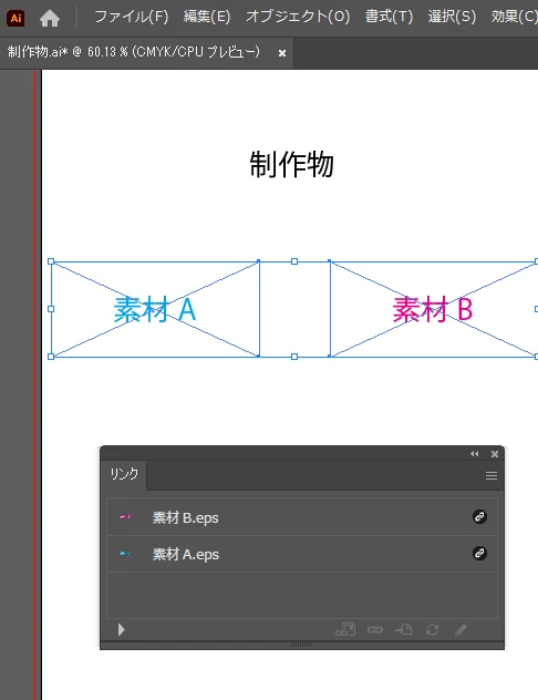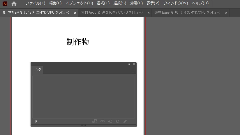 1枚目の制作物のデータは開きますが、 2・3枚目の素材は別の画面に保存されていて