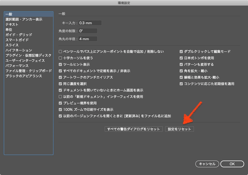 Illustrator ガイドラインが 実線に戻ってしまう。