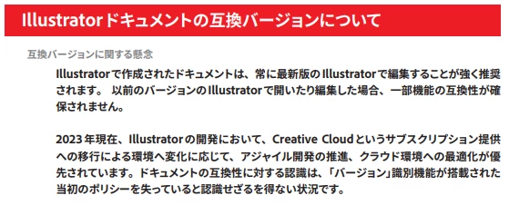 1つの回答として、次のページからダウンロードする「Illustrator 互換性ガイドブック2024」という文書(PDFファイル)があります。