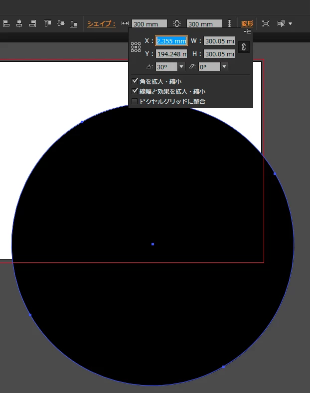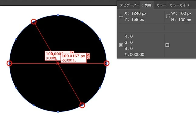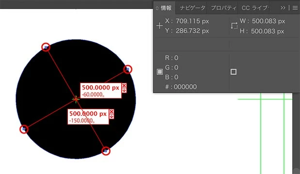Adobe Illustrator CCにおいて、正円を回転させた際、幅、高さにそれぞれ若干のズレが生じます。