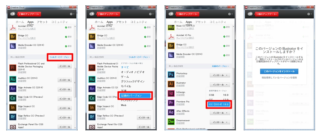 Illustrator CC 2014 Ver.18.1.0をアップデート前のVer.18.0.0に戻すには