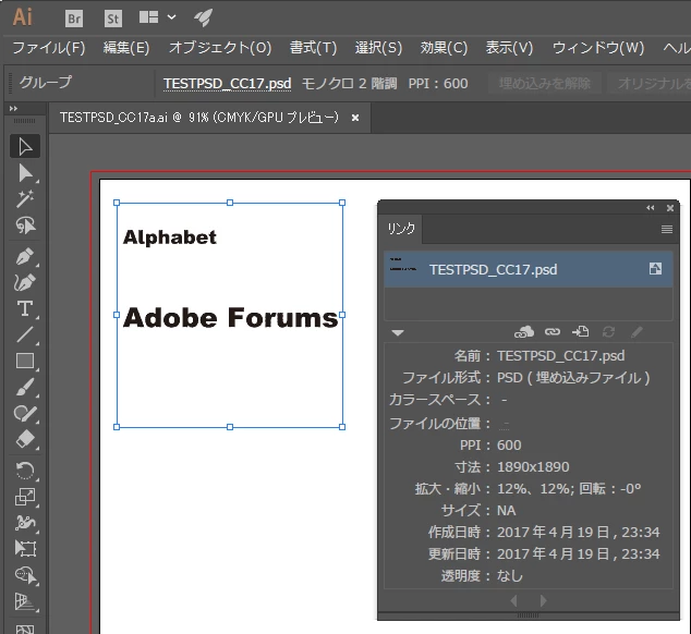 Illustrator CC 2017.1で一旦リンク配置+その後埋め込みをしましたが、