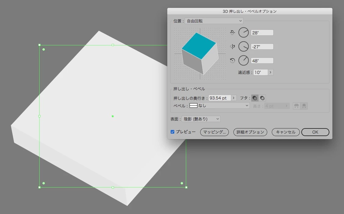 Illustrator CC 2017の3D押し出し・べベルで遠近感をつけるとバグります