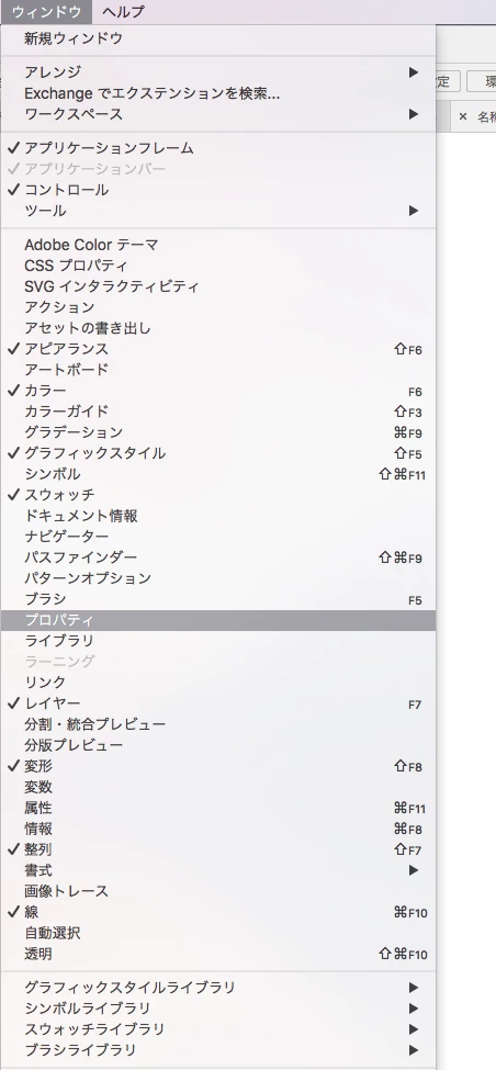 Illustrator CC 2018のプロパティパネルが表示されない。