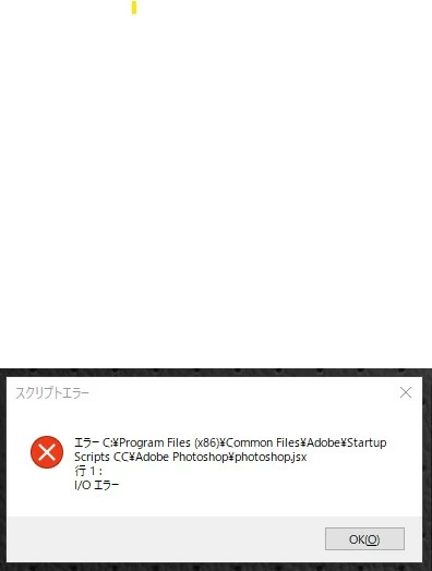 エラー C:\Program Files (x86)\Common Files\Adobe Startup Scripts CC¥Adobe Photoshop photoshop.jsx